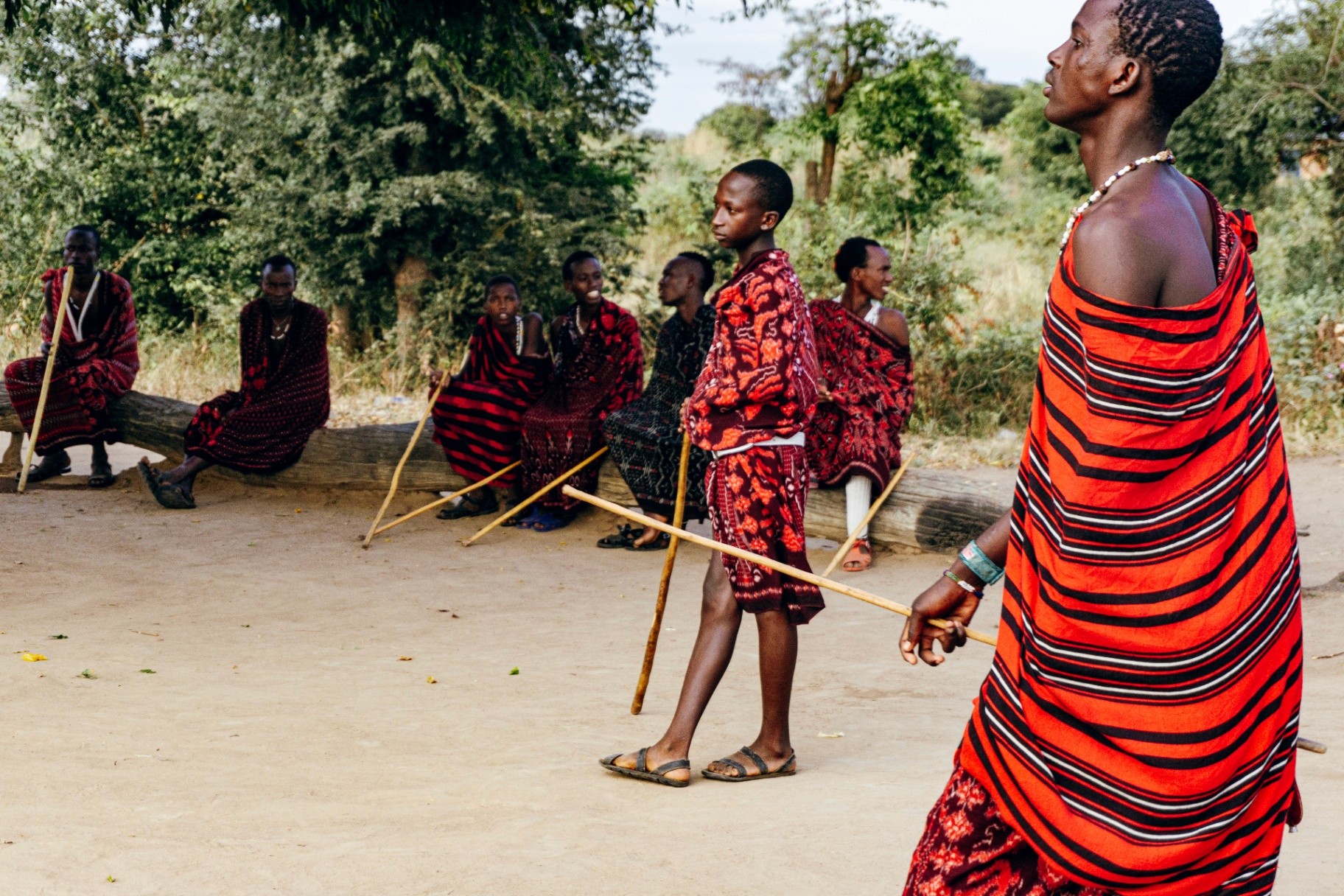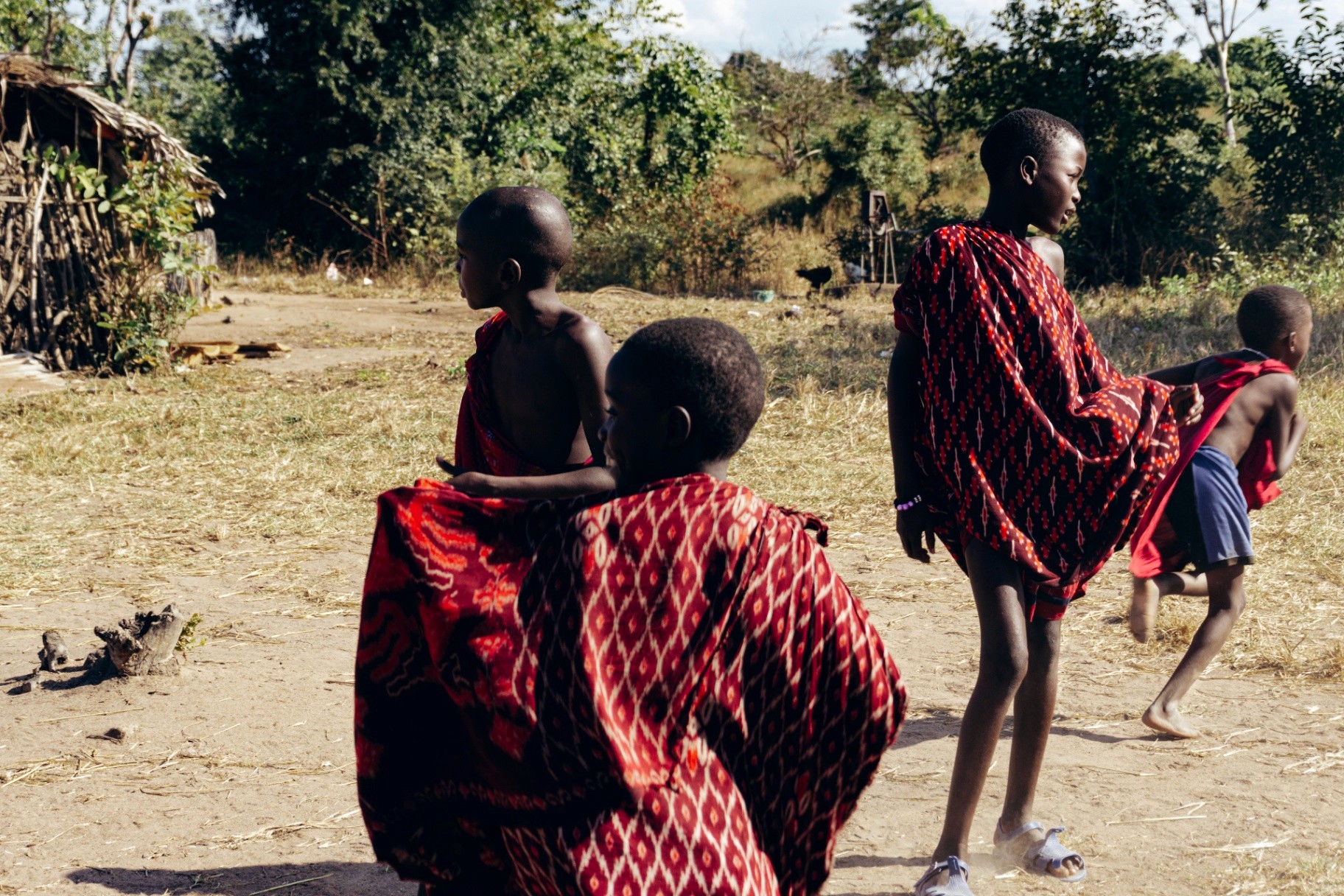 Quelques instants auprès d'une tribu Maasaï, des moments de calme et de vie, les enfants jouant au soleil, la préparation du repas, l'Adumu, le bétail...